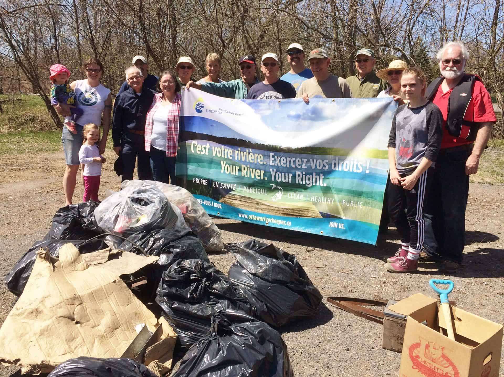 Volunteers were also busy at parc des Cèdres (Gatineau), and as seen in the featured image above, in Hawkesbury at a cleanup coordinated by our Riverwatcher Louis Lafontaine. To celebrate Earth Day, hardcore whitewater paddlers and a big team from Adobe cleaned up garbage on the river shoreline and also raised funds for Ottawa Riverkeeper. It is wonderful to see so many people coming to help out and get involved to protect the Ottawa River!